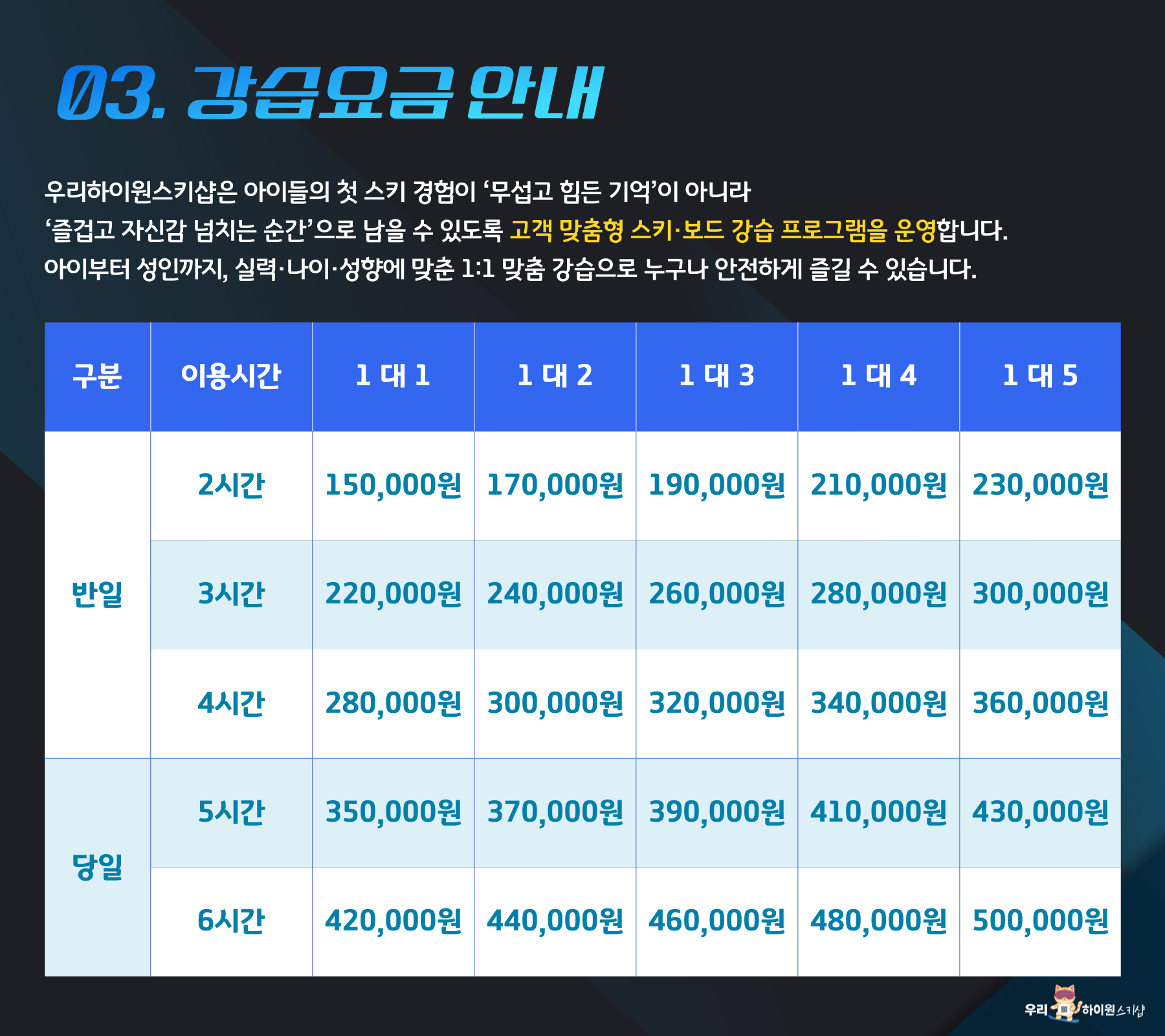 자세한사항은 전화 또는 카카오채널 '우리하이원스키샵'을 통해